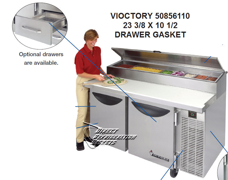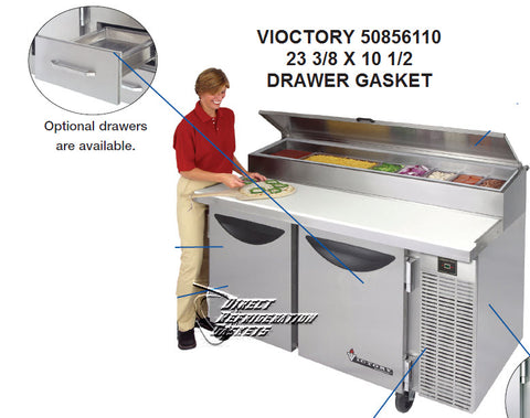 VICTORY Gasket Part # 50856110- Size - 20-10-516 23 3/8 X 10 1/2 MAG 4SC DRAWER GASKET FOR VPT46, VPT65, VPT88 50856110